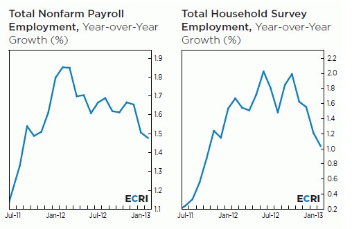 - ECRI’s Lakshman Achuthan posted a presentation on ECRI’s website that concludes that year of year jobs growth in the US has been falling since mid 2011.