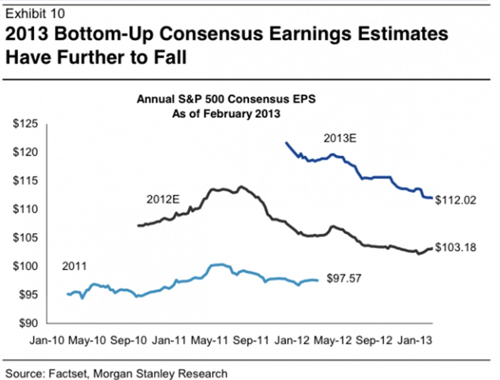 - Earnings growth expectations are the key drivers of stock prices, and they are falling.