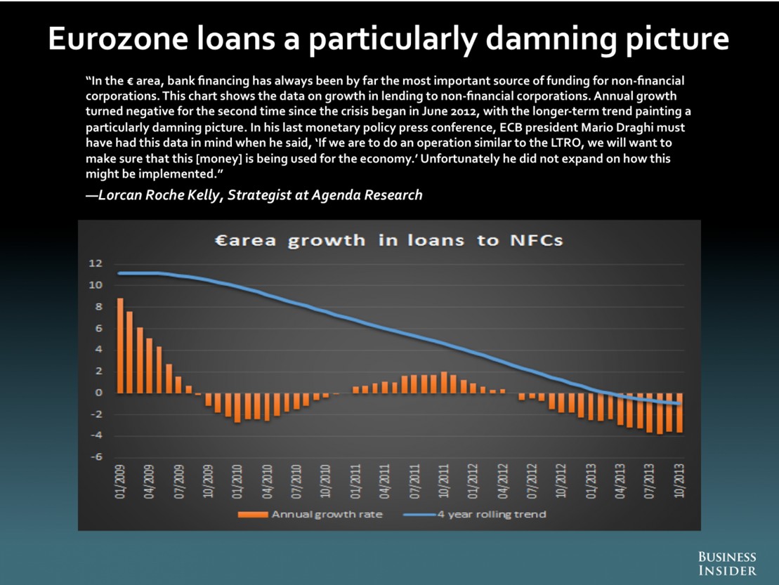 In addition to those, the coming EU bank stress tests in 2014 encourage banks to hoard cash and shun lending to all but the lowest risk borrowers.