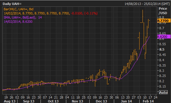 Euronews reports: – Financial experts have warned Ukraine is on the brink of default with some saying currency reserves are enough for only two months. Russia has provided the first three billion dollar tranche of a loan. With the political stand off the rest has been frozen. (via soberlook.com)