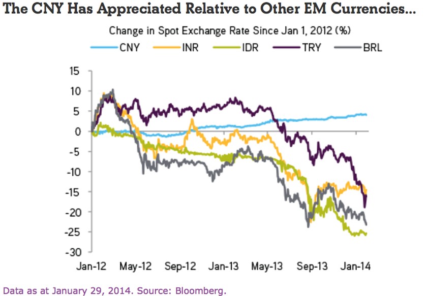 Yuan Appreciation Versus USD, Now Versus Emerging Markets