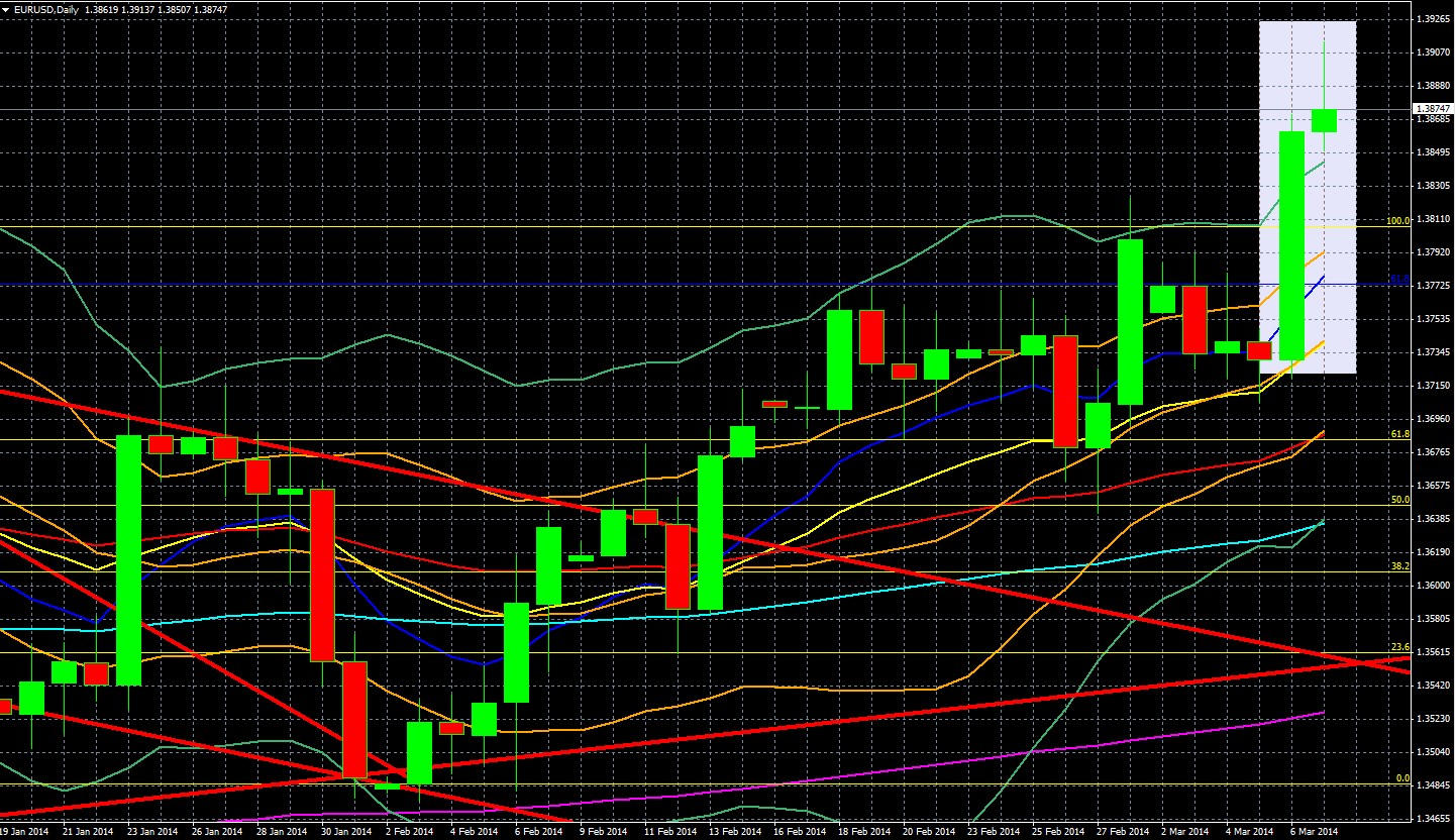 As noted above, caution ahead of the March 16th Crimea referendum and the new round of Western sanctions it could impose is the biggest potential market mover. Neither the US nor EU have more than a few top tier data releases, so the EURUSD is more likely moving with overall risk appetite, which in turn will most likely be influenced by the following: