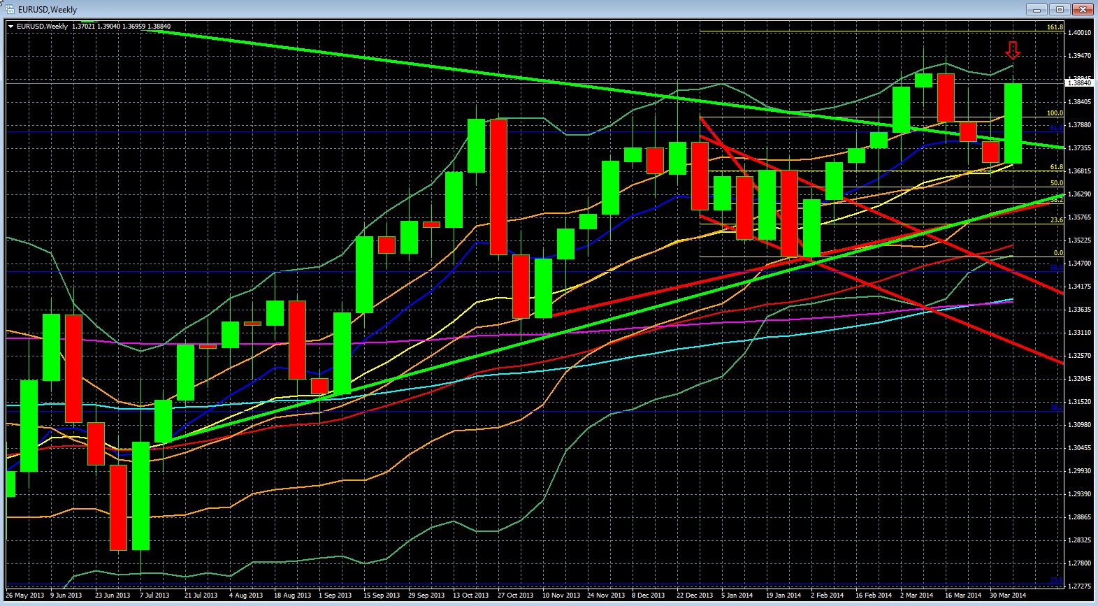 EURUSD Weekly Chart May 26 2013 – Present: Bullish Higher Low But 1.400 Resistance Looms Near