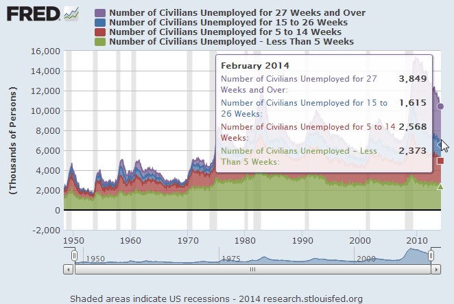 The key point of the chart above is that the long term structurally unemployed remain by far the largest segment of the unemployed, despite years of assorted stimulus. The implication is that this largest group of jobless will not benefit from more QE.