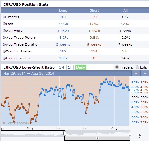 As the oldest of our EMAs, such a confirmed breach takes real conviction among traders that the EURUSD is headed lower. The fundamental drivers of that conviction are clear, the poor EU economic data of the past week and continued potential for slowing growth from escalating military and economic sanctions activity. See our fundamental analysis for more on that.
