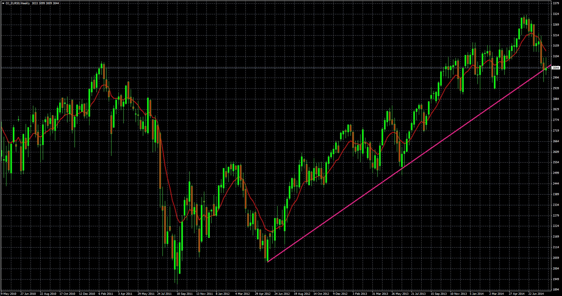 Weekly DJ Eurostoxx50 Index, April 28 2013 To Present